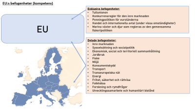 En konsekvens av att medlemsländerna har tilldelat EU befogenheter att lagstifta innebär delvis att man har lämnat ifrån sig en del av sin egen möjlighet att lagstifta, men detta gäller enbart inom vissa specifika områden. EU:s möjlighet att lagstifta är uppdela på olika nivåer, eller befogenheter.