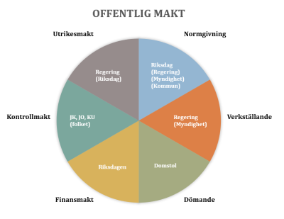 Den offentliga makten kan brytas ned i sex delar.