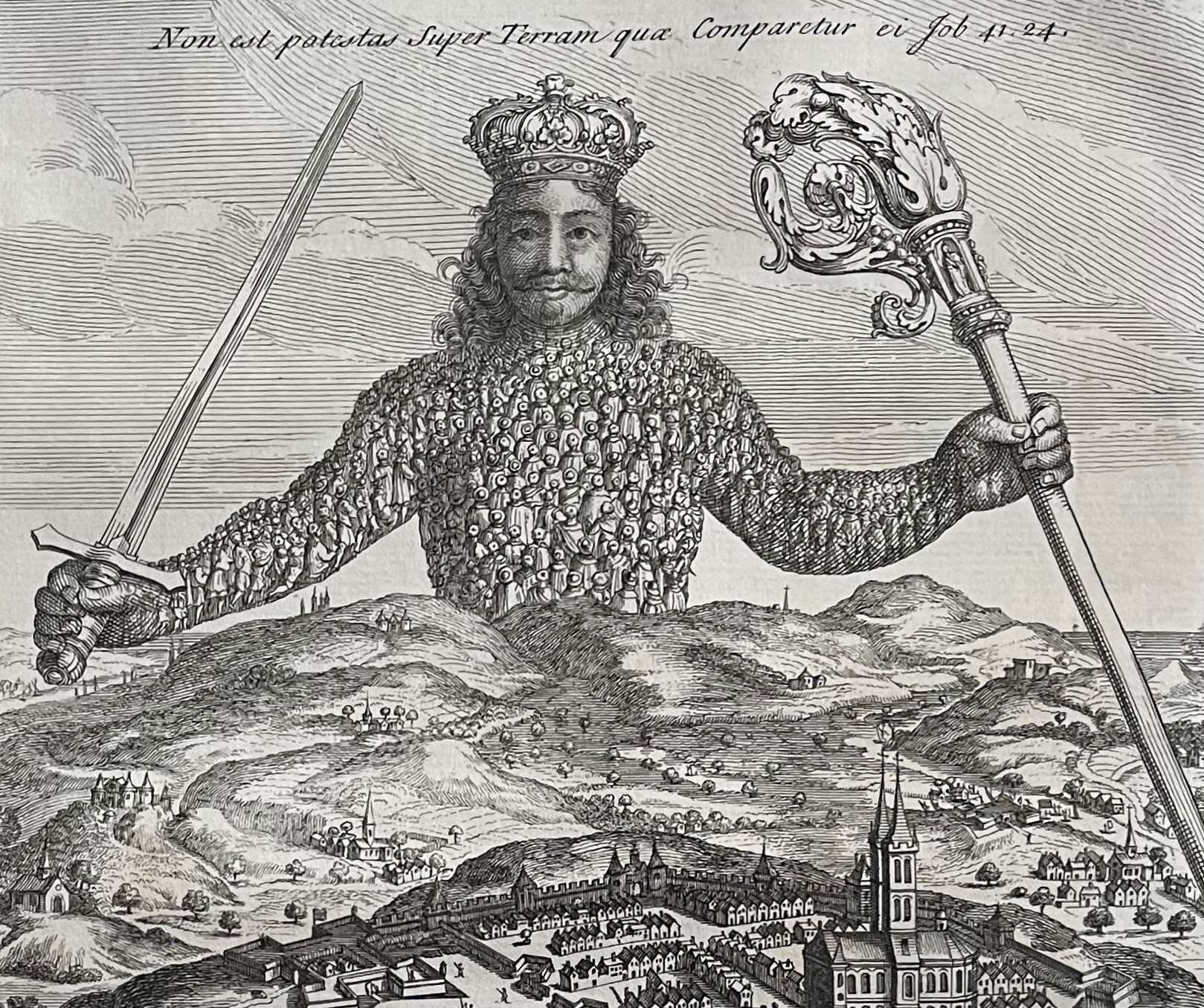 Hobbes svar är tydligt och överlag pessimistiskt. Han menar att utan regler och en stark stat faller samhället ner i kaos, ett ”allas krig mot alla”. Folk skulle roffa åt sig och bruka våld fritt. För att undvika detta måste människor ingå i ett samhällskontrakt där de går med på att skapa en offentlig makt, som Hobbes menar bör ligga hos en suverän, en kung eller dylikt. Suveränens uppgift är att skapa ordning och trygghet genom regler som upprätthålls. Folks individuella frihet hamnar i baksätet till den viktigare orsaken, ordning och reda. Först då kan människor känna sig fria, menar Hobbes.