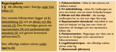 Om vi börjar med att läsa den 1 § i regeringsform står det: