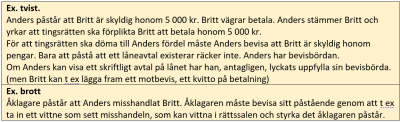 • fri bevisföring, parter får lägga fram all typ av bevisning