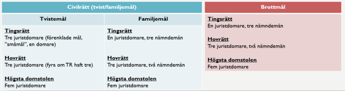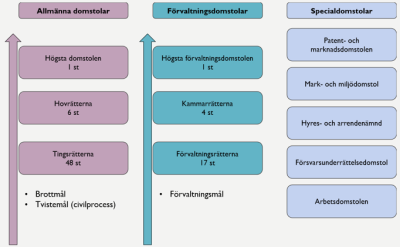 - Allmänna domstolar – hanterar tvistemål och brottmål