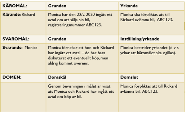 - Hur ser kopplingen mellan domen och yrkande ut?